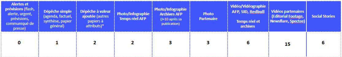 Certaines dépêches AFP (Flash, Alertes, Urgents) possèdent le pictogramme, car elles vous sont offertes quel que soit votre abonnement. Les communiqués de presse (qui ne proviennent pas de l'AFP) n'affichent pas ce pictogramme, même si leur consultation est toujours gratuite.